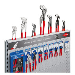 Pentru clești pentru pompe de apă de 300 mm - 560 mm lungime. Adecvat pentru rafturile centrale tip gondolă cu lăţime de 1000 mm. Dimensiuni (B x H x T): 1000 x 135 x 75 mm.