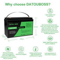 Acumulatorul LiFePO4 12V 100Ah – DATB12100 este o soluție modernă, sigură și extrem de eficientă pentru aplicații solare, sisteme off-grid, rulote, bărci, UPS și echipamente portabile. Folosește chimia litiu-fier-fosfat, recunoscută pentru stabilitate termică superioară, durată mare de viață și siguranță excelentă.