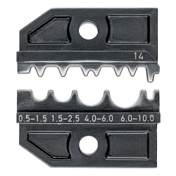 Aplicație: pentru conectori de cablu neizolați Capacitate milimetri pătrați: 0,5 — 10 mm² Numărul cavităților în urma turnării: 4 AWG: 20 — 8