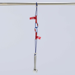 Pentru o protecție fiabilă a sculelor: capacitate de susținere evaluată prin numeroase teste de susținere pentru scule de până la 6 kg, chiar și pentru cele care funcționează cu baterii. Pentru variații versatile de conectare pentru a fixa uneltele. Reduce riscul pierderii sculelor, vătămarea oamenilor sau animalelor sau deteriorarea obiectelor. Pentru a respecta reglementările privind lucrul la înălțime, de exemplu, la alpinismul utilitar, la toaletarea arborilor, la serviciile de urgență, pe mare etc în combinație cu carabinele de material și cablurile de prindere, sunt disponibile diferite modalități de fixare. Bucla de adaptare se poate fixa, prin intermediul corzii, direct la articulația mâinii, la curea, la echipamentul de cățărare, etc Cu o buclă formată din curea plată cusută la un capăt și cordon cusut cu opritor de cordon la celălalt capăt, fiecare cusut de patru ori. Pentru toți cleștii KNIPEX cu punct accesoriu de prindere sau clemă cu prindere de siguranță. de utilizat numai împreună cu o curea adaptoare 00 50 02 T, cu o capacitate de 1,5 kg. Dop de cablu fabricat din aluminiu solid. FĂRĂ EIP = Fără echipament individual de protecție. Conținut: buclă adaptor 00 50 13 T, cu carabinieră fixă 00 50 03 T.