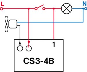 CS3-4B este folosit pentru a întârzia pornirea și oprirea ventilatorului, în funcție de iluminare. Un mare avantaj este cablajul fără fir neutru.