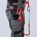 Pentru o protecție fiabilă a sculelor: capacitate de susținere a sculelor de până la 1,5 kg, evaluată prin numeroase teste de susținere. rază mare de lucru: cablu de prindere lung, pentru lucrări simple. Reduce riscul pierderii sculelor, vătămarea oamenilor sau animalelor sau deteriorarea obiectelor. Pentru a respecta reglementările privind lucrul la înălțime, de exemplu, la alpinismul utilitar, la toaletarea arborilor, la serviciile de urgență, pe mare etc Asigurarea poate fi atașată direct pe partea unde se află cordonul sau cârligul de siguranță la echipamentele de cățărare sau la punctele fixe prevăzute în acest scop. schimbare rapidă a hamului de la geanta de scule la asigurare Cureaua din material textil, cu o lungime de aproximativ 90 cm, se întinde până la 1,5 m când este aplicată greutate. Cu o buclă realizată dintr-o centură rigidizată la un capăt și o coardă țesută cu opritor la celălalt capăt. Pentru toți cleștii KNIPEX cu punct accesoriu de prindere sau clemă cu prindere de siguranță. FĂRĂ EIP = Fără echipament individual de protecție.
