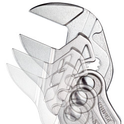 Înlocuiește un întreg set de chei, cu dimensiuni atât metrice, cât și imperiale. Fălci netede pentru asamblarea ușoară a fitingurilor, cu finisaje de suprafață – lucrați direct pe crom!. Excelent și pentru prinderea, reținerea, presarea și îndoirea pieselor de prelucrat. Nu deteriorează marginile fitingurilor delicate, datorită contactului fără joc, pe toată suprafața. Reglare rapidă prin atingerea unui buton, direct pe piesa de prelucrat. Fără ajustare accidentală a fălcilor de prindere și fără alunecarea îmbinării. Apucare reglabilă liber pentru toate deschiderile de chei până la capacitatea indicată cu ajutorul fălcilor de prindere ghidate paralel. Cursa dintre fălcile de prindere permite strângerea și slăbirea rapidă a îmbinărilor cu șurub, folosind principiul clichetului. Forţă de prindere ridicată graţie intensificării de zece ori a forţei manuale. cheie universală ideală în format de buzunar. piesa indispensabilă din trusa de scule de la bord.