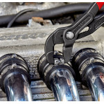 pentru deschiderea şi închiderea colierelor cu clic. Mânere rotative pentru acţionarea sigură a colierelor în orice poziţie. Raport de transmitere bun: colierele se deschid simplu şi uşor, fără prea mare efort şi se închid la loc. Pentru lucrări confortabile, de exemplu, la conductele cu carburant, conductele de vid şi ştuţurile de absorbţie. Funcţie suplimentară: desprindere uşoară a furtunurilor cu ajutorul fălcii dinţate. Cap suplu; lăţime redusă a capului, mânere rotative: o sculă ideală în special în spaţii strâmte.