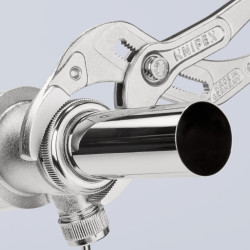 ideal pentru strângerea și slăbirea pieselor de îmbinare pentru sifoane, tuburi de plastic şi piulițe rotunde de cuplare. reglaj fin pentru adaptare optimă la diferite diametre. Pentru conectoare, filtre de ulei, țevi și sifoane din plastic. Robust, ultrarezistent la solicitări. Pentru fişe şi cuplaje cu buşon înşurubat (precum, de exemplu, conectorul circular Cannon). Pentru desprinderea uşoară a furtunurilor de pe suporturile conductelor şi a cartuşelor de filtru. Aderență optimă la suprafețe curate, fără ulei și degresate. Articulaţie perforată reglabilă în 25 de trepte. Aripă ergonomică. cu fălci de apucare dințate; până la Ø 80 mm.