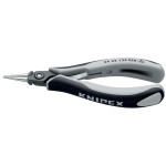 Sortiment pentru cele mai mari exigențe cu privire la performanță și rezultat. Clești de precizie pentru lucrări de montaj fin, de ex. în electronice și mecanică fină. Pentru apucat, ținut și îndoit. Mânere disipatoare – deviază energia electrică. Articulație înșurubată: mers precis al cleștelui, fără joc. Suprafețele articulației confecționate cu precizie pentru mișcări uniforme și cu frecare redusă pe întreg intervalul de deschidere. Arc dublu cu frecare redusă pentru o deschidere lină și uniformă. Suprafețe de apucare șlefuite neted; muchii șanfrenate cu grijă. Finisaj fără efect de orbire. Greutate redusă. învelișuri ESD pentru mâner ergonomice, multicomponent și în două culori; negru / gri. fălci rotunde, ascuțite.