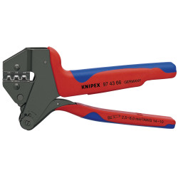 O singură sculă pentru aproape 1000 de aplicaţii de sertizare: utilizabilă cu adaosuri de sertizare și elemente de poziționare auxiliare 97 49 X. mișcare de sertizare aproape paralelă. Calitate constantă a sertizării datorită inserțiilor de precizie și blocării obligatorii (deblocabilă). Presiunea de sertizare este setată cu precizie (calibrată) din fabrică, se poate regla și ulterior. Amplificarea forței prin transmisie cu pârghie în scopul unei operări fără efort. Diverse elemente de poziționare auxiliare pentru determinarea precisă a poziției. La cerere se pot livra adaosuri de sertizare pentru aplicații care depășesc gama sortimentului oferit. Inserția de sertizare poate fi înlocuită cu ușurință folosind două șuruburi. Vă rugăm să consultați instrucțiunile de utilizare. Aplicație: conectoare pentru cabluri solare MC4® (multi-contact) & MC4® EVO 2, 2,5 / 4 / 6 mm². Suporturile de contact disponibile opțional 97 49 66 1 pentru MC4 și 97 49 66 1 EVO pentru MC4 EVO 2 facilitează ghidarea contactelor în timpul procesului de sertizare. MC4® este o marcă înregistrată a Stäubli Electrical Connectors AG.