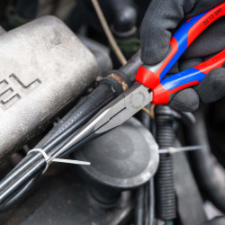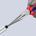 fălci plat-rotunde, lungi, ascuțite spre vârf. vârfuri de precizie elastice, tolerante la torsiune. recomandat pentru lucrări mai fine de apucare și tăiere. Cu tăișuri pentru sârmă moale, semidură și dură. Tăișuri călite suplimentar prin inducție, duritatea tăișurilor de cca. 61 HRC. Cu mânere confortabile: alcătuite din trei componente ergonomice, pentru o manevrare optimizată, și echipate cu două interfețe KNIPEXtend pentru extindere. fălci drepte.