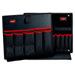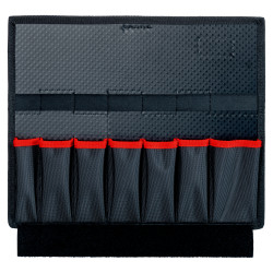 Cu un total de 48 opțiuni de inserție. compartimente pentru unelte cu două laturi, din țesătură din poliester rezistentă la uzură. compartimentele pentru unelte sunt lipite cu adeziv. compartiment superior pentru unelte (piesă capac) cu 10 buzunare și 10 bucle elastice. compartimentul superior pentru unelte este înșurubat la nivelul capacului KNIPEX L-BOXX®. Compartimentul pentru unelte inferior (piesa de podea) sus cu 7 buzunare și eclisă pentru prinderea compartimentului pentru unelte; are și rolul de ridicare și amplasare în KNIPEX L-BOXX®. piesă de bază inferioară cu 7 buzunare și 7 bucle elastice. Dacă este necesar, compartimentul inferior pentru unelte poate fi îndepărtat din KNIPEX L-BOXX®. dimensiuni (B x H x T): 375 x 55 x 310 mm. L-BOXX® este o marcă înregistrată a firmei Sortimo International GmbH.
