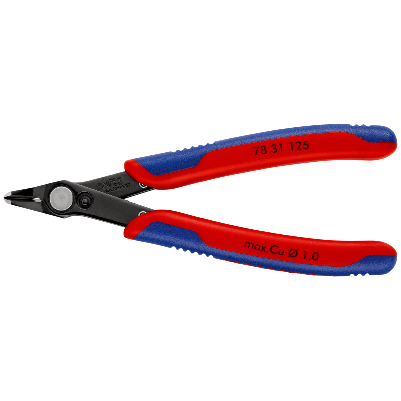 Clești de precizie pentru lucrări de tăiere foarte fine, de ex. pentru sisteme electronice și mecanică fină. Tăișuri șlefuite, foarte ascuțite, fără fațetă. Vârfurile formate exact separă chiar și firele de sârmă lipite unele de altele începând cu un Ø de 0,2 mm. Tăiere prin forfecare cu margini de tăiere micro, în zig-zag, pentru tăierea de înaltă precizie chiar și a celor mai subțiri sârme și o durată lungă de viață. Articulație cu nit din oțel inoxidabil. Cursă extrem de ușoară pentru lucru cu efort redus. Cu arc de deschidere şi limitator de deschidere. cu cap îngust. tăișuri călite suplimentar prin inducție, duritatea tăișurilor de cca. 60 HRC. oțel special pentru scule, brunat.