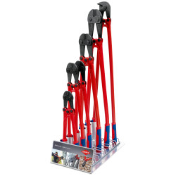Livrare fără scule incluse. Pentru prezentarea cleştilor de tăiat bolţuri şi fibre. Dotare individuală cu până la 6 cleşti de tăiat bolţuri şi fibre. Greutate: cca. 8 kg. Expunere disponibilă la ridicarea a 6 cleşti de tăiat bolţuri şi fibre.