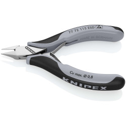Design durabil, optimizat pentru sarcină, cu articulație fără joc. manșoanele suple, îndoite în sus către capul cleștelui asigură ghidarea sigură și confortabilă chiar și între degetul mare și degetul arătător. nu necesită mult efort datorită raportului de transmisie foarte mare. Design optimizat la expunerea la sarcină pentru o senzație directă de lucru. Arc dublu cu frecare redusă pentru o deschidere lină și uniformă. Polișarea cu aspect de oglindă oferă o bună protecție anticorozivă în combinație cu o peliculă fină de ulei – nu apar tulburări ale circuitului de conectare din cauza bucăților de crom care se desprind de pe suprafețe. Tăișuri călite suplimentar cu laserul, duritatea tăișurilor de minim 60 HRC. cap mini ascuțit, cu fațetă mică.