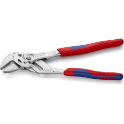 Autoblocare pe țevi și piulițe: fără alunecare pe piesa de prelucrat, pentru un efort minim. Suprafețe de apucare cu dinți căliți printr-un procedeu special, duritatea dinților de cca. 61 HRC: apucare sigură de durată datorită rezistenței mari la uzură. Articulaţie perforată pentru o stabilitate ridicată graţie ghidajului dublu. Construcţie robustă, rezistenţă la murdărie; destinată în special activităţii în exterior. Protecţia împotriva prinderii previne rănirile provocate prin strivire. Cleşte cu cârlig de fixare pentru montarea unei siguranţe împotriva căderii.