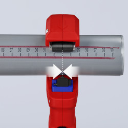 Taie rapid și șanfrenează toate țevile uzuale din plastic de uz casnic, la canalizare cu Ø de până la 50 mm printr-o singură operație. Lamă reversibilă de oțel de înaltă calitate, pe rulmenți cu bile, poate fi ușor înlocuită fără scule ajutătoare. Tăiere netedă: nu este necesară reajustarea sau debavurarea, reduce potențialele blocaje sau deteriorări ale garniturilor. Taie țevile din plastic rezistente la temperaturi înalte sau de alte feluri cu Ø 32, 40 sau 50 mmși cu o grosime a peretelui de până la 2,4 mm. Ghidare optimă a țevii și tăiere ușoară, datorită rolelor cu reglare automată, pe rulmenți. Poziționare ușoară datorită accesului vizual direct la punctul de tăiere. Lamă de tăiere cu arc: nu este necesară ajustarea suplimentară în timpul tăierii. Lamă interschimbabilă cu două tăișuri care poate fi inversată dacă prezintă semne de uzură. Decuparea sau tăierea fină este posibilă de la o lungime a secțiunii de circa 10 mm. Carcasă de înaltă calitate durabilă, confecționată din material plastic armat cu fibră de sticlă.