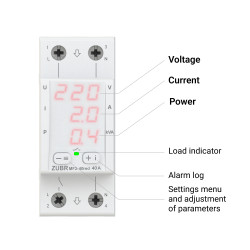 ZUBR MF2 roșu protejează echipamentul împotriva tensiunii înalte și joase, zero întreruperi și limitează consumul de curent sau energie. În cazul abaterilor de tensiune, ZUBR va opri sarcina, iar în caz de curent sau putere excesivă, sarcina se va opri după o perioadă de întârziere prestabilită.