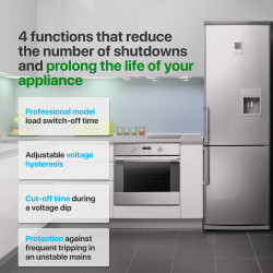 Din fabrică, releul are o întârziere minimă pentru pornirea sarcinii de 3 secunde. În funcție de tipul echipamentului conectat, o puteți seta în intervalul de la 3 la 999 secunde. Pentru echipamentele sensibile la pene frecvente de curent, cum ar fi frigiderele și aparatele de aer condiționat, se recomandă setarea întârzierii de pornire la 2-3 minute.