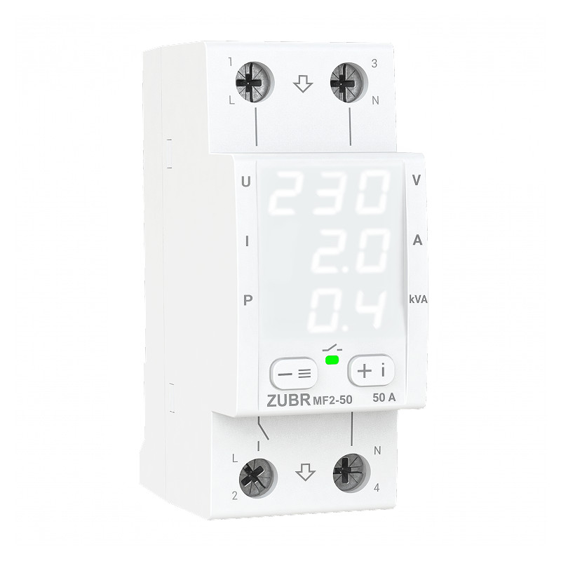 Releu multifuncțional ZUBR MF2-50, Protectie tensiune, curent și putere 1-50 Amperi