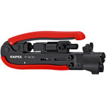 pentru presarea fişelor F, BNC şi RCA. execuţie robustă. Adecvat pentru cabluri RG 59 / 6 / 11. Element de cap rotativ, pentru diferite dimensiuni de cablu. Adaos rotativ pentru diferite tipuri de fişe. Şurub de reglare pentru diverse lungimi de fişe. Prin altele utilizabil pentru ştecărul de compresie Kathrein EMK 12; Cablecon F-56 CX3 5.1; Astro FKS 06.