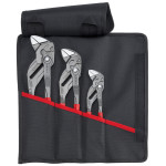 Cleștii cheie de la KNIPEX sunt adecvati ideal pentru prinderea, fixarea, presarea ușoară și îndoirea pieselor de lucru, fiecare din ei înlocuind un întreg set de unelte. Cleștii cheie de la KNIPEX sunt adecvati ideal pentru prinderea, fixarea, presarea ușoară și îndoirea pieselor de lucru, fiecare din ei înlocuind un întreg set de unelte. Geantă pliantă de calitate, din poliester durabil. Echipat cu chei cu clește în lungimi de 180, 250 și 300 mm. Dimensiuni, deschis (L x H): 430 x 325 mm.