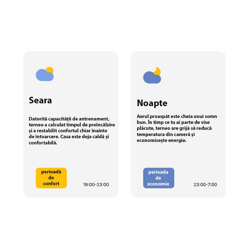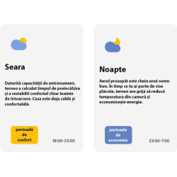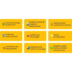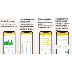 Acces instantaneu la temperatura locuinței dvs. și la dinamica încălzirii, precum și la rapoartele de consum de energie în kWh și bani.