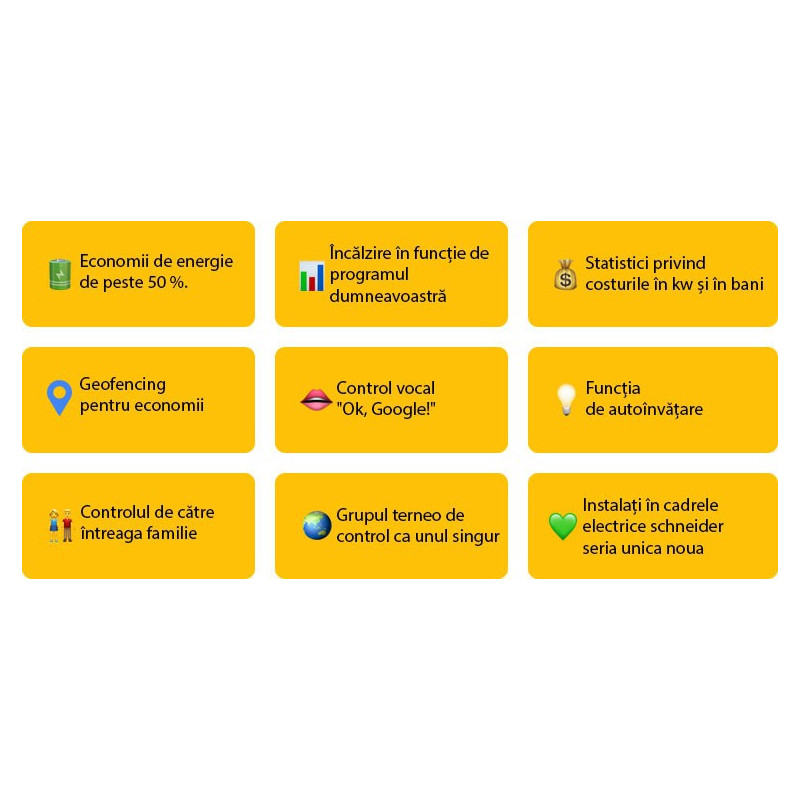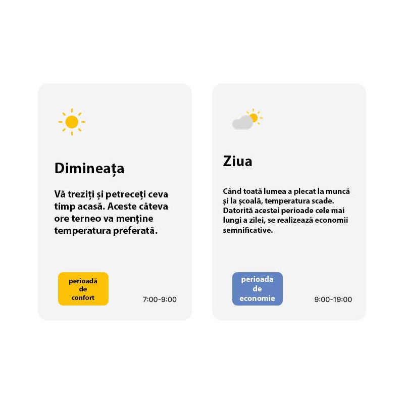Programare: setați până la 16 intervale de timp pe zi, în fiecare dintre acestea termostatul putând menține o temperatură diferită.