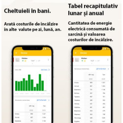 Cu statistici detaliate privind consumul de energie si grafice personalizate ale consumului in bani, Termostatul Terneo AX te ajuta sa monitorizezi si sa optimizezi eficienta energetica a casei tale. Vedeti cat de mult economisiti si ajustati-va programul in consecinta pentru economii maxime.