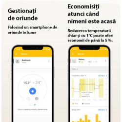 Descarcati aplicatia gratuita de pe Google Play sau AppStore si setati termostatul in modul Punct de acces. Cu doar cateva clicuri, veti fi conectat si pregatit sa experimentati confortul si controlul complet asupra incalzirii casei tale.