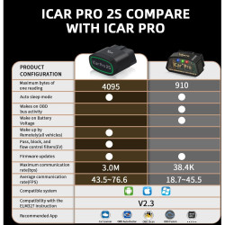 Vgate iCar Pro 2S este un sistem avansat de diagnoză auto OBD2 Bluetooth 5.2 conceput pentru a satisface nevoile atât ale șoferilor obișnuiți, cât și ale profesioniștilor. Acest adaptor este compatibil cu vehiculele conforme cu OBD2/EOBD și suportă o gamă largă de vehicule, inclusiv vehicule pe benzină și diesel de 12V cu o greutate de până la 6,5 tone. Cu un consum redus de energie și caracteristici cum ar fi repausul automat și trezirea de la distanță, acest instrument este blând cu bateria mașinii, consumând doar 3 mA în modul de repaus.